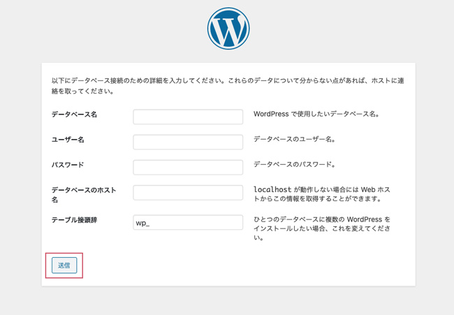 4.下記のデータベースの情報を入力して、送信ボタンをクリック。