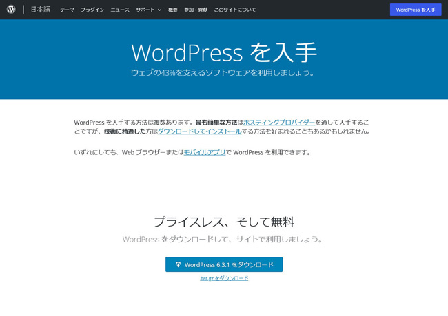 1.WordPress.org サイトから WordPress 最新バージョンをダウンロードする。